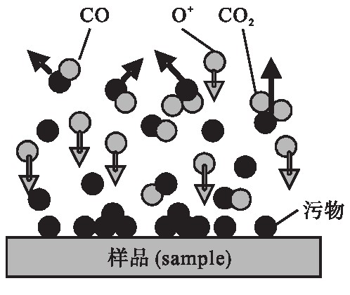 就反應機理來看, 等離子體清洗通常包括以下過程:無機氣體被激發為等離子態;氣相物質被吸附在固體表面;被吸附基團與固體表面分子反應生成產物分子;產物分子解析形成氣相;反應殘余物脫離表面。 典型的等離子體化學清洗工藝是氧氣等離子體清洗。下圖簡單描述了等離子體清洗的機理, 主要是依靠等離子體中活性粒子的“活化作用”達到去除物體表面污漬的目的。通過等離子體產生的氧自由基非常活潑, 容易與碳氫化合物發生反應, 產生二氧化碳、一氧化碳和水等易揮發物, 從而去除表面的污染物。
